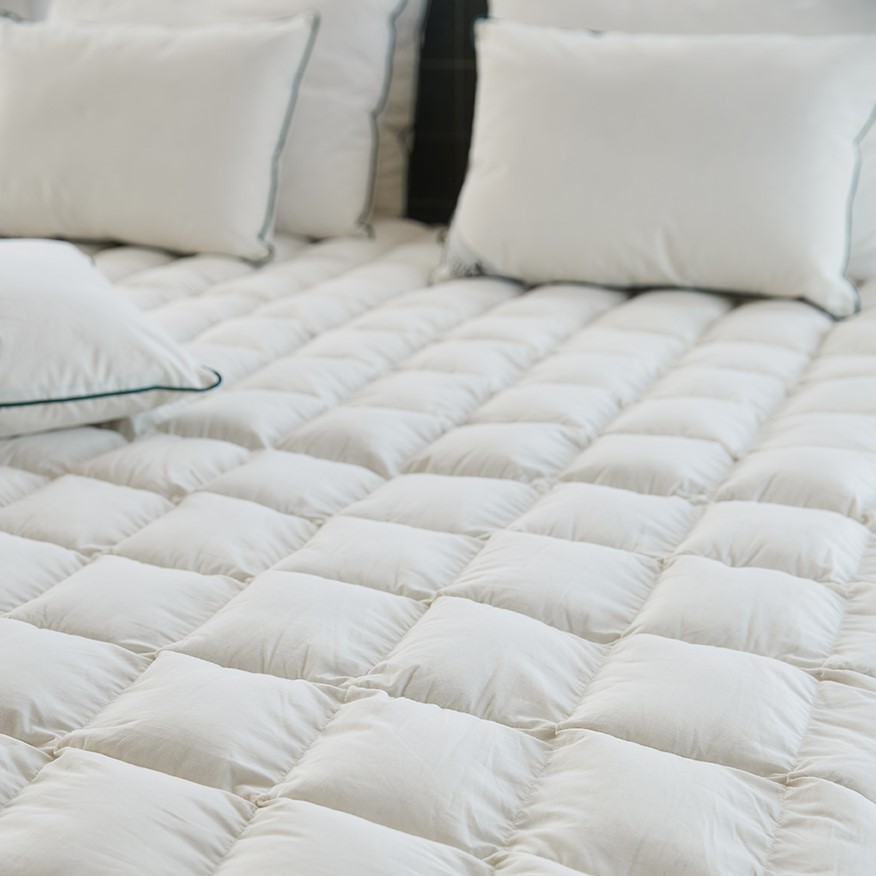 Det betyder dog ikke, at dynen er stiv eller umedgørlig. Snarere opleves den som fyldig og jævnt fordelende. Dynen ligger mere roligt omkring kroppen og giver en mere konstant fornemmelse, når du vender og drejer dig.