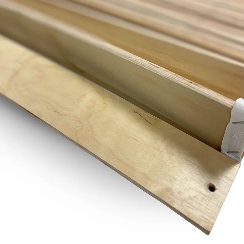 Formspændt lamelbund - 200x200 Cocoon Home FSL-200200 Lamelbunde i formspændt birketræ til 200x200 seng En lamelbund er det bærende fundament under madrassen og spiller en langt større rolle for komfort og støtte, end mange er klar over. Vores lamelbunde er dansk produceret og fremstillet af formspændte lameller i birke-finer, som er designet til at kunne give sig under belastning. I modsætning til flade lamelbunde har de buede lameller en naturlig spændstighed, der arbejder aktivt sammen med madrassen. Den formspændte konstruktion giver madrassen mulighed for at reagere mere dynamisk på kroppens bevægelser og vægtfordeling. Det betyder bedre støtte til skuldre, ryg og hofter samt en mere afbalanceret liggekomfort. Samtidig tilfører lamelbundens fleksibilitet ekstra “bounce” til sengen, hvilket forbedrer det samlede sovemiljø og reducerer følelsen af et hårdt eller dødt underlag. Jo fastere madrassen er, desto vigtigere bliver det, at underlaget kan give sig. En god lamelbund fungerer som et aktivt lag mellem seng og madras og bidrager til, at madrassens egenskaber udnyttes korrekt. Derfor er vores lamelbunde særligt velegnede til faste skum-, latex- og naturmadrasser, hvor fleksibilitet nedefra er afgørende for komforten. Tekniske specifikationer og montering Lamelbundene leveres i fuld bredde op til madrasmål på 100x200 cm. Ved bredere sengestørrelser leveres to separate lamelbunde, hvilket sikrer korrekt støtte og stabilitet over hele sengens bredde. Ved disse størrelser kræves desuden en midterbro i sengerammen, som lamelbunden kan fastgøres til. Montering kræver, at sengen har en indvendig sengesideliste, som lamellerne skrues fast i. Dette giver en stabil konstruktion og gør samtidig sengen nem at montere og afmontere igen. Lamelbundene leveres ikke med skruer som standard, da korrekt skruevalg afhænger af sengerammens materiale og tykkelse. Vi tilbyder dog standardskruer, som passer til de mest almindelige typer sengerammer. Lamelbundene monteres ved at skrue lamellerne fast i sengens indvendige sengesidelister samt eventuel midterbro ved bredere sengestørrelser. Skruehullerne i lamellerne er undersænkede og har en diameter på Ø 5 mm, hvilket sikrer, at skruehovederne ligger plant med overfladen og ikke påvirker madrassens placering. Lamelbundens samlede bredde er bevidst fremstillet et par millimeter smallere end det madrasmål, den er beregnet til. Det sikrer, at lamellernes ender ikke står direkte op mod sengens indvendige sider, hvilket ellers kan medføre friktion, knirkelyde og unødigt slid ved bevægelse i sengen. Da lamellerne er fremstillet i ubehandlet birke-krydsfiner uden overfladebelægning i plastfolie eller plastik-finer, kan der forekomme mindre flosninger i træet og omkring skruehullerne. Dette er en naturlig følge af materialevalget og påvirker hverken funktion, styrke eller holdbarhed. 920,00 DKK Vis produkt